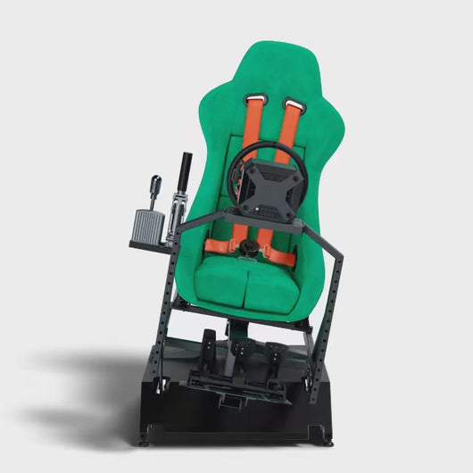 The rig supports 2 degrees of freedom (pitch + roll), allowing you to physically feel acceleration, braking forces, and lateral G-turning effects in a way no fixed frame can match.
